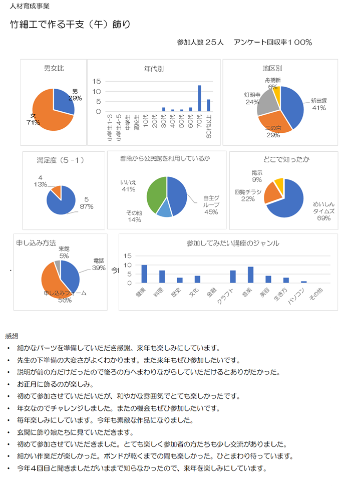 竹細工でつくる干支(午)かざりアンケート